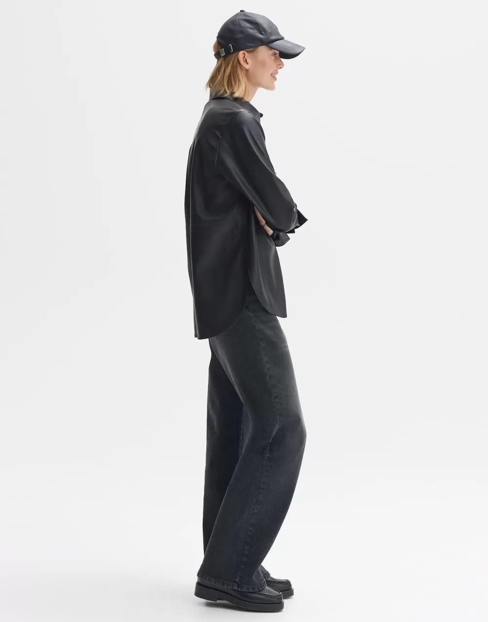 De Blouse In Coole Lederlook Is Gemaakt In Een Relaxte Oversized Pasvorm. Dankzij De Casual Vorm Kan Het Overhemd Ook Wo…