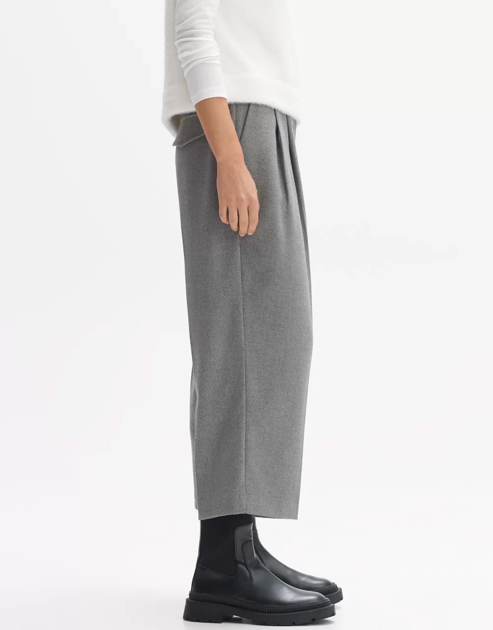 Deze Culotte Is Gemaakt Van Een Zachte Flanellen Stof En Maakt Indruk Met Zijn Tweekleurige Keperstructuur En Comfortabele Pasvorm. De Wijde, Verkorte Pijp Krijgt Een Klassiek Karakter Door De Geintegreerde Plooi En Vouw En Is Perfect Voor Naar Kantoor.