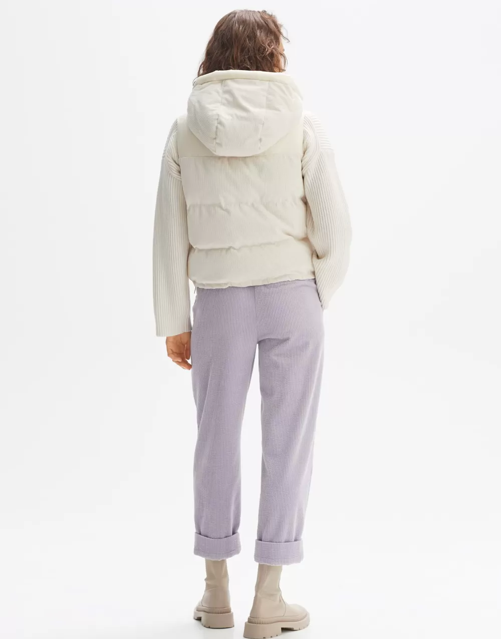 Het Gilet Van Gerecycled Polyamide Heeft Een Zachte Corduroy Afwerking. De Gewatteerde Vulling Combineert Alle Voordelen Van Een Klassieke Donsvulling Zonder Echt Dons Te Bevatten: Het Is Waterafstotend, Winddicht, Verwarmend En Lichtgewicht.