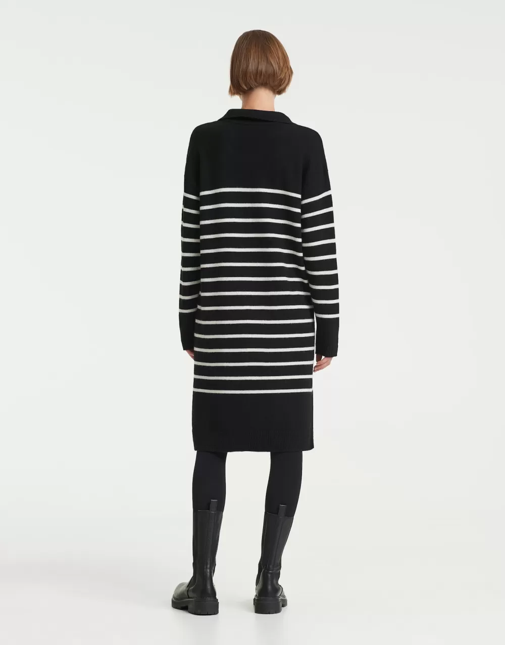 De Jurk Van Een Gerecyclede Polyamidemix Is Voorzien Van Een Modieuze Streep. Daarbij Zijn Het Schouderstuk En De Uiteinden In Een Kleur Gehouden. De Polokraag En V-Hals Beloven Een Sportieve, Elegante Look.