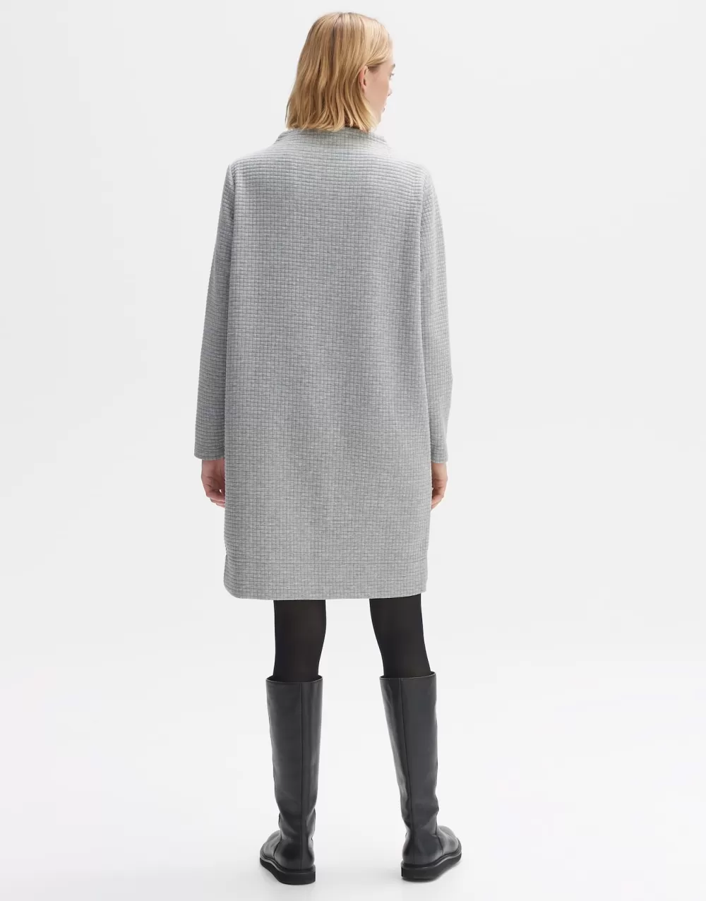 De Jurk Van Een Viscosemix Overtuigt Met Een Moderne Vorm. De Knielengte, Losse Pasvorm Flatteert Het Silhouet, Terwijl De Trechterhals Elegantie Toevoegt. De Stof Is Doorgestikte Jersey Die In Een Honingraatstructuur Is Verwerkt.