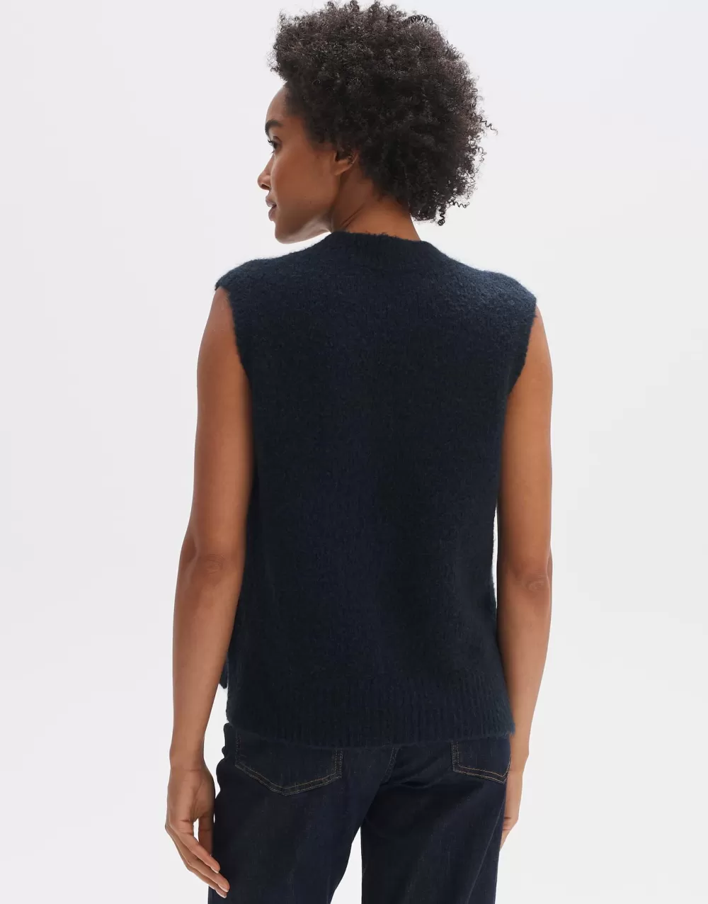 The Tank Top With Mohair Content Fascinates With Its Wonderfully Soft Feel. The Fit Is Kept Straight And Has Knitted Hems On The Slightly Wider Armhole, Collar And Waist. Small Side Slits Give The Simple Look A Fashionable Touch.