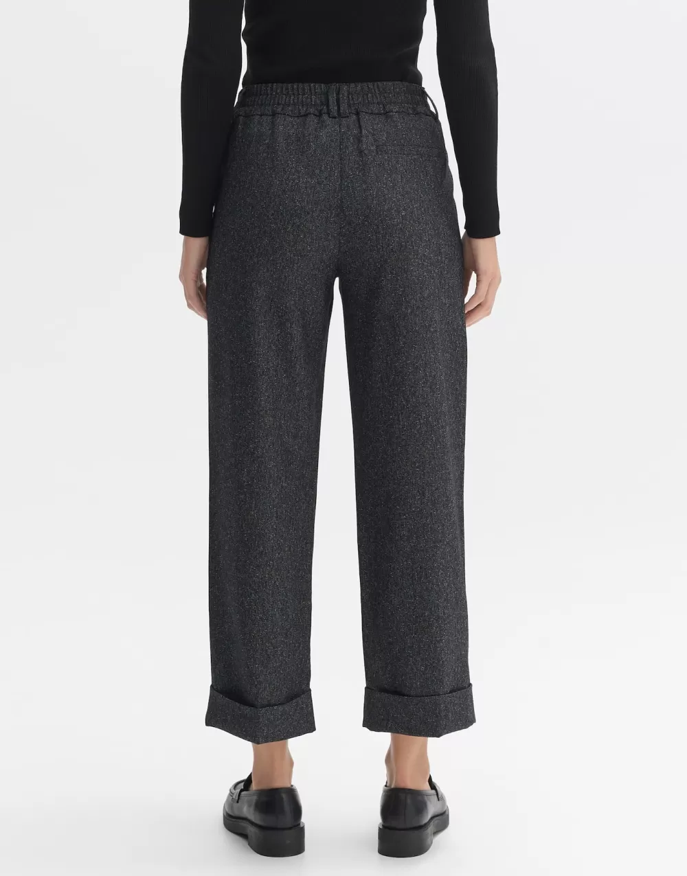 Deze Stoffen Broek Heeft Een Prachtige Peper-En-Zoutlook. Een Wijde Omslag Geeft De Broek Een Cropped Leg. De Vouwen En …