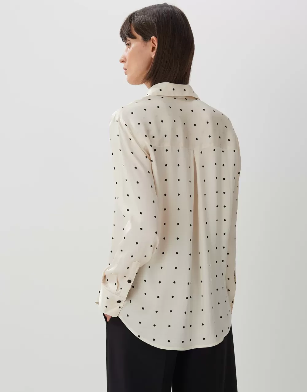 De Blouse Met Print Straalt Een Zekere Jaren 50 Flair Uit, Gecombineerd Met Elegante Glans Door De Satijnen Stof.