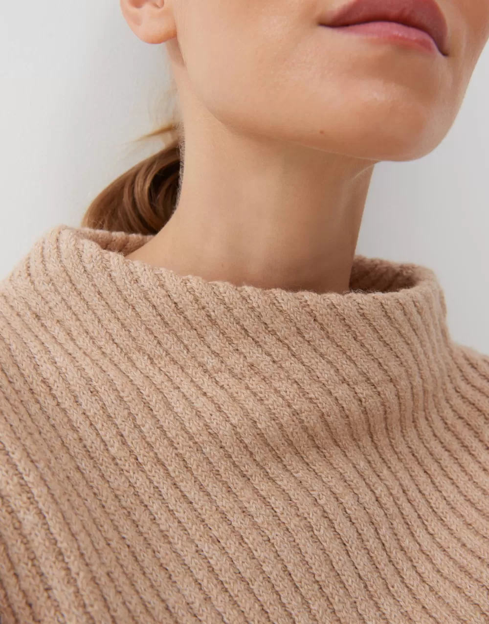 Deze Gebreide Trui Is Gemaakt Van Zachte Bci-Katoenmix En Gebruikt Een Diagonale Ribboord Om Een Mooie Dynamiek Te Creeren. De Casual Pasvorm Heeft Overlappende Schouders. Een Kleine Opstaande Kraag Rondt De Trui Vakkundig Af.