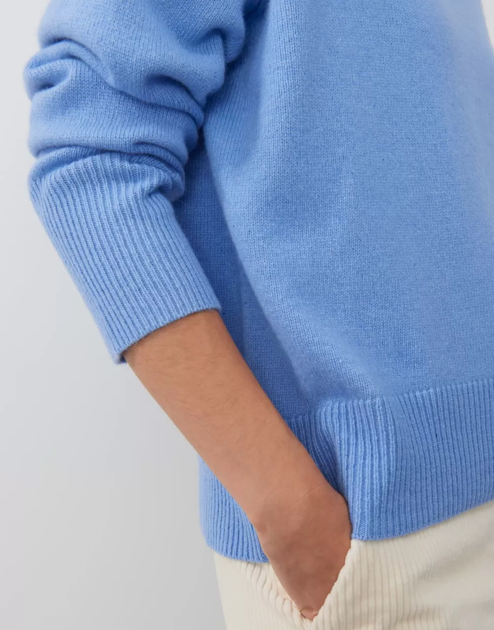 De Gebreide Trui Van Een Wolmix Is Eenvoudig Gehouden En Concentreert Zich Op Discrete Details. De Elegante Opstaande Kraag Heeft Een Split Aan De Achterkant. Een Raglanachtig Naaddesign Siert Het Schoudergedeelte.