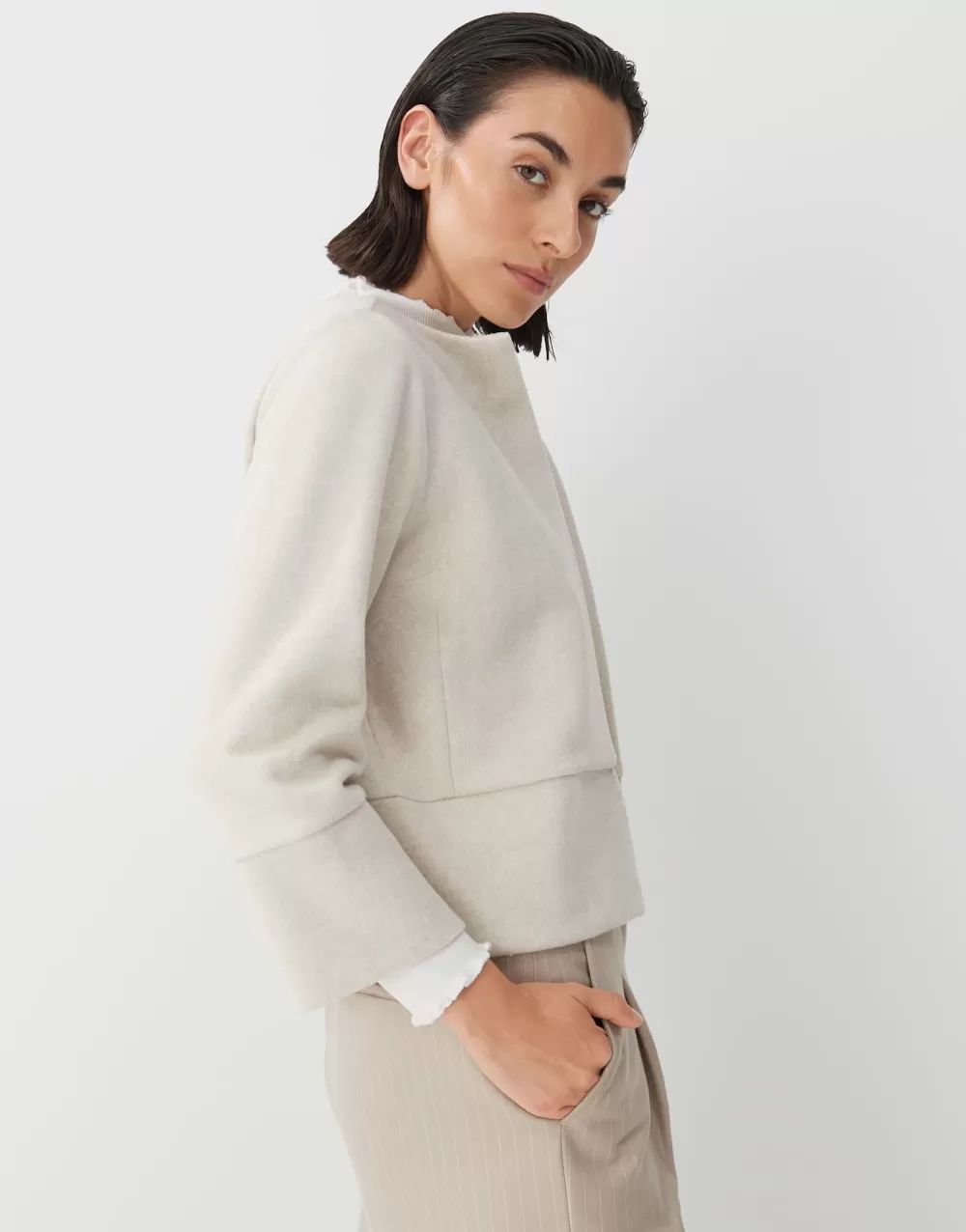 Het Sweatjack Van Een Viscosemix Voelt Extreem Zacht Aan Dankzij Het Geborstelde Oppervlak. De Wijde, Verkorte Pasvorm Is Puur Gehouden En Vestigt De Aandacht Op Het Speciale Gevoel.